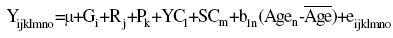 es el promedio de edad al parto de la población; y eijklmno es el efecto aleatorio residual.