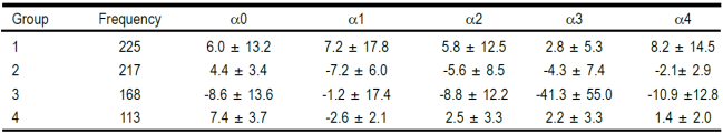 Table 4 Parameter distribution (mean ± standard deviation) of individual curves classified based on the four main groups identified by Legendre orthogonal polynomials