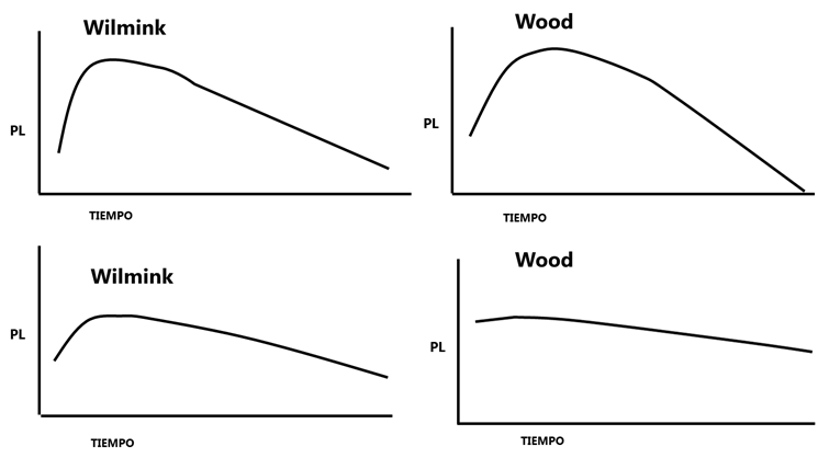 Figura 1 Esquematización de curvas de lactación típicas, de acuerdo con los modelos de Wilmink y Wood