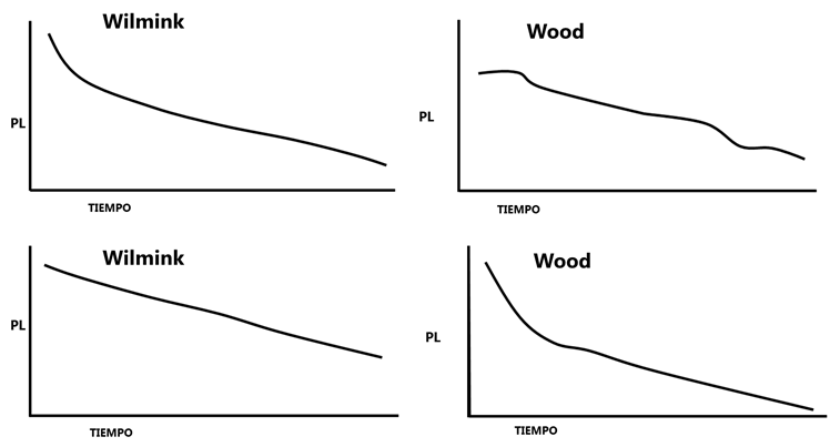 Figura 2 Esquematización de curvas de lactación atípicas, de acuerdo con los modelos de Wilmink y Wood