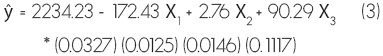 X3 = Diámetro de la copa (m) promedio en la parcela de 1,089 m2