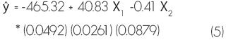 Las ecuaciones 1, 2, 3, 4 y 5 estiman la producción total de macromicetos comestibles en las localidades estudiadas con R2 que varían de 76 a 99%, valores aceptables si se parte del hecho de que el número de datos utilizados para generarlas fue reducido, 10 por localidad; lo anterior confirma la relevancia de las variables consideradas, tanto del arbolado como las de tipo meteorológico, sobre la producción de hongos silvestres comestibles en las tres localidades estudiadas del estado de Tlaxcala. En cada una de ellas la respuesta varió como resultado de las características del arbolado y las condiciones topográficas prevalecientes en los predios estudiados (Cuadro 1).