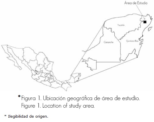 La superficie reforestada se ubica en el ejido Leona Vicario, municipio Benito Juárez, Quintana Roo, México (Figura 1), entre las coordenadas 20°55'00'' a 20°58'4.2'' de latitud norte y 87°13'32.2'' a 87°16'00'' de longitud oeste, a una altitud de 10 m. El clima es cálido subhúmedo con lluvias en verano y una temperatura media anual estimada de 24.5 °C; la precipitación anual es de 1,130 a 1,182 mm y predominan los suelos de tipo litosol. La vegetación dominante es selva mediana subperennifolia.