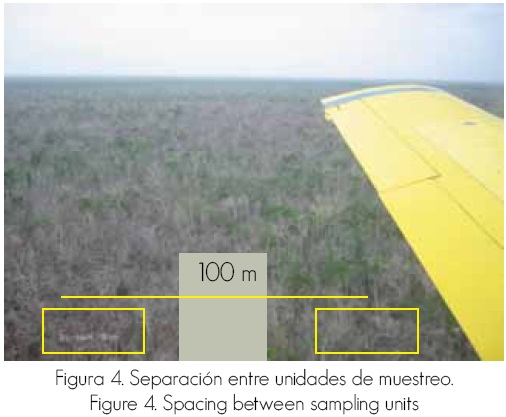 En el centro del terreno de 2,000 ha se delimitó una franja de 300 1,100 m (33 ha) orientada de norte a sur (Westveld, 1949; San Buenaventura y Asiddao, 1957; Casas, 2000), en la que se ubicaron las unidades de muestreo designadas como temporales y permanentes, ambas de forma rectangular.