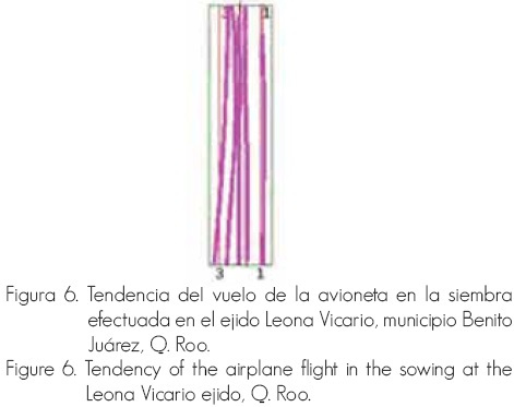Al dispersar la semilla, la aeronave tendió a concentrarse en la porción noroeste de la franja experimental (Figura 6).