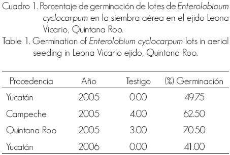 Assessment of the Enterolobium cyclocarpum (Jacq.) Griseb aerial sowing at Leona Vicario ejido, Quintana Roo