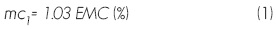 EMC = Contenido de humedad en equilibrio de la interfase combustible- atmósfera. El cálculo es igual al utilizado en la estimación del contenido de humedad de los combustibles de 1 hora (Ecuaciones 2, 3, y 4).