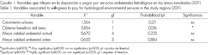 Como variables que influyen en la voluntad de pago para conservación del dosel forestal en beneficio de los servicios sconcretos que la población extrae del ambiente (económicos) y las percepciones de cambio ambiental eran importantes, por lo que se buscó la asociación entre ellas y la DAP (Cuadro 1).