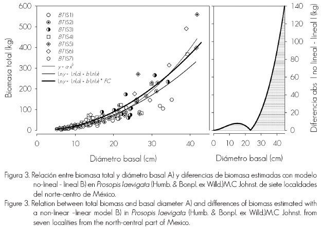 Key words: Allometry, biomass estimates, mesquite, forest management, nonlinear and linear model.