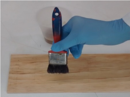 Figura 2. Aplicación de adhesivo proteína de soya-furfural en chapa de madera de pino.