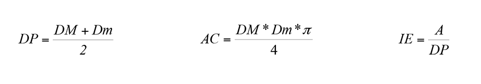 La medición de las plantas se llevó a cabo con una regla graduada y flexómetro, se midió la altura, el diámetro mayor de la copa y otro perpendicular a este; se calculó el diámetro promedio de la copa, área de copa y el índice de esbeltez, según las siguientes fórmulas: