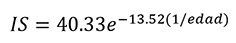 Para construir el modelo de IS se recolectaron 90 virutas en el bosque natural adyacente y dentro de la plantación, distribuidos en todas las condiciones de crecimiento de P. patula. Con la información de altura y edad proveniente del análisis de virutas, se ajustaron funciones para estimar el índice de sitio (Montero y Kanninen, 2003; López and Valles, 2009; Pérez et al., 2012; Rodríguez-Carrillo et al., 2015). Para la rutina de análisis de regresión se usó el paquete estadístico SAS (SAS, 2004), mediante el método de mínimos cuadrados, con el procedimiento MODEL. El mejor modelo ajustado resultó el de Schumacher: