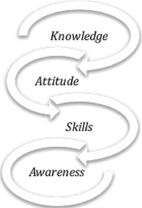 Las dimensiones que Fantini identifica como parte de la competencia intercultural son: el conocimiento, las habilidades, las actitudes y la conciencia de la competencia (Fantini, 2000). De todas, la conciencia es la más relevante porque representa el grado de reflexión e introspección entre las dos lenguas y culturas. La conciencia de la otra cultura no se puede olvidar como el conocimiento declarativo. A continuación, se presenta gráficamente el modelo desarrollado por Fantini.