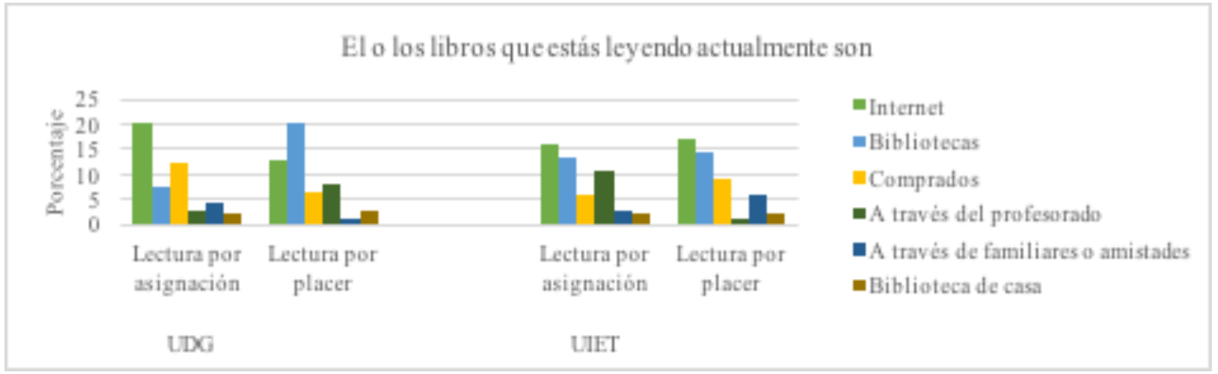 Figura 2 Origen de los libros que lee el estudiantado de la UDG y la UIET