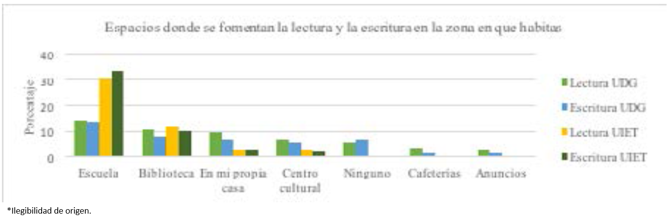 Figura 4 Espacios donde se fomentan las prácticas letradas en las zonas donde habita el estudiantado de la UDG y la UIET