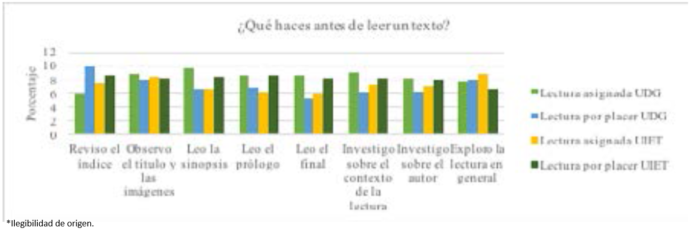 Figura 9 Prácticas previas a la lectura del estudiantado de la UDG y la UIET