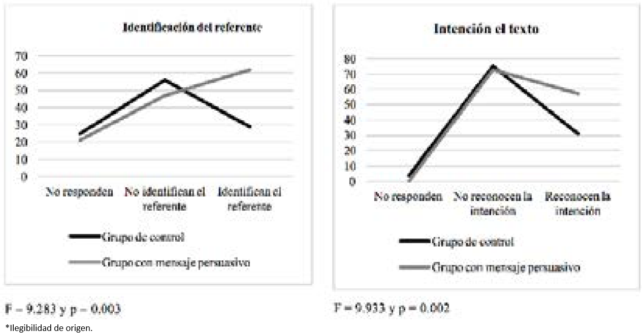 Se observó una alta elaboración cognitiva por parte de los adolescentes en leer y responder la prueba con apego a las consignas con significatividad estadística, p = 0.020 y una variación entre las medias de F = 3.327. Ello muestra de entrada una influencia positiva de las actitudes implícitas (variable independiente) en cuanto al interés de los sujetos por el tema y la realización de las actividades, en contraste con los adolescentes del grupo de control, que dejaron las pruebas de comprensión en blanco.