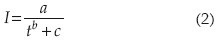 Con los datos recopilados de precipitaciones intensas se realizó un ajuste estadístico utilizando la expresión de Gumbel; luego, los datos obtenidos del modelo estadístico se ajustaron según el siguiente modelo: