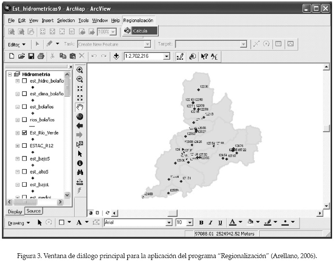 El programa "Regionalización" fue elaborado dentro del sistema de información geográfica ArcGis 8.3, en versión ArcView. Se seleccionó este software por la capacidad que ofrece para el desarrollo de procedimientos que automatizan procesos, a través del lenguaje Visual Basic para Aplicaciones (VBA); ArcGIS brinda también un conjunto de objetos denominado ArcObjects, que permite manejar la información geográfica mediante programación y así mecanizar los procesos.