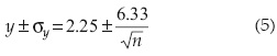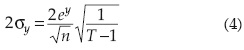 La prueba original toma como base el gasto con periodo de retorno T=10 años, ya que es el intervalo más grande, para el cual la mayoría de los registros darán estimados confiables (Dalrymple, 1960). Con esto se tiene entonces que 2σy está dado por (4):