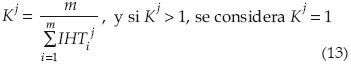 Donde IHTij son los valores del índice IHT calculados para cada mes 1≤i≤m durante los ciclos de los cultivos bajo riego con la fórmula siguiente: