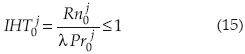 Donde IHT0j≤1 es el índice climático correspondiente al primer mes (antes de la siembra), cuando la precipitación Pr0j es alta.