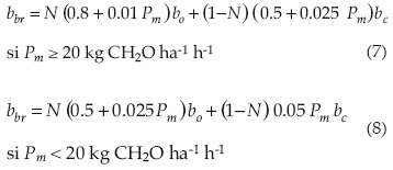 Los valores de bbr se estimaron en función de la tasa máxima de producción de biomasa, Pm (en kg CH2O ha-1 h-1) (FAO, 2000):