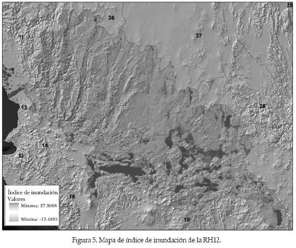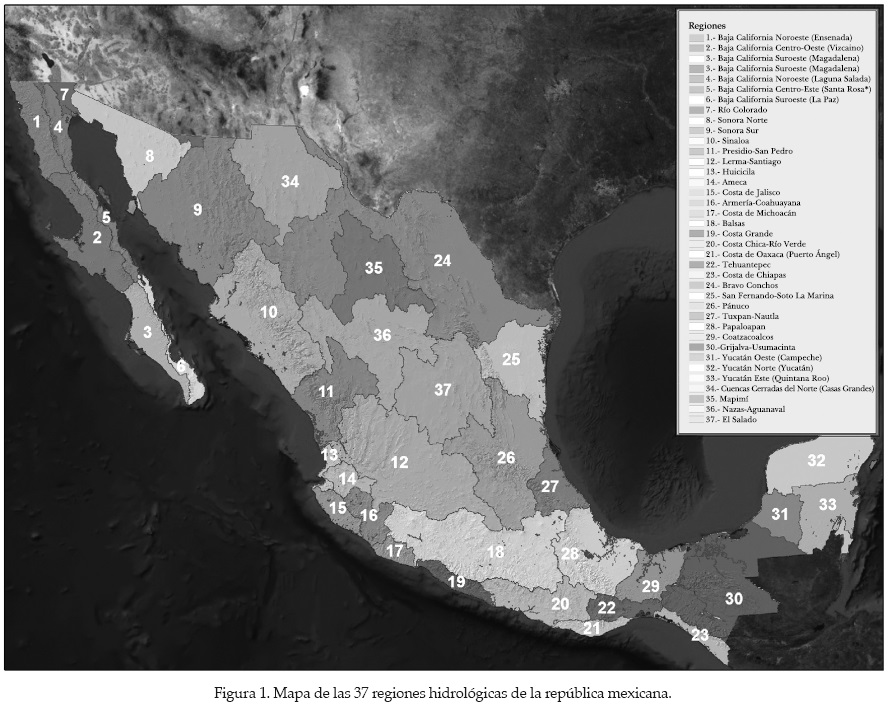 La metodología requiere ser aplicada para cuencas completas. Por ello, y por razones de simplicidad, eficiencia y presentación, el índice de inundación se ha estimado individualmente para cada una de las 37 regiones hidrológicas que conforman el territorio mexicano (ver figura 1 y cuadro 1).