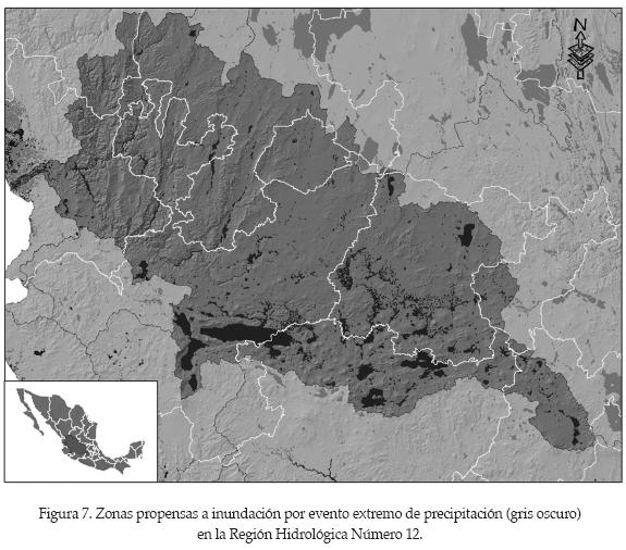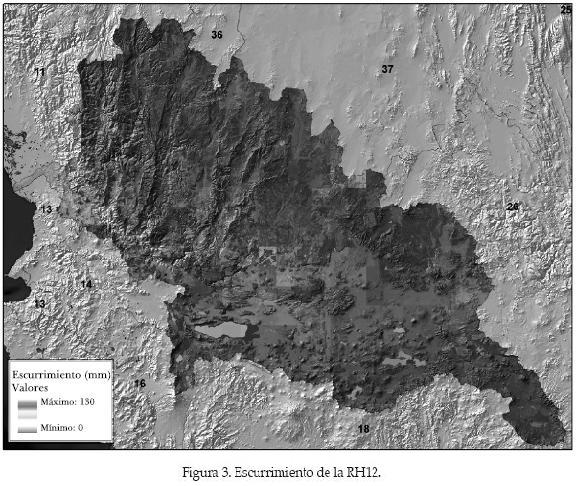 A continuación se analiza la metodología y sus resultados en la Región Hidrológica Número 12, denominada "Lerma-Santiago". Como la metodología es la misma para el resto de las regiones, se considera innecesario realizar el mismo análisis para todas ellas. La RH12 se encuentra conformada principalmente por los estados de Jalisco, Nayarit, Zacatecas, Aguascalientes, Guanajuato y, en una menor porción. por Durango, Michoacán, Querétaro y el Estado de México. Dentro de los cauces más importantes se pueden nombrar el río Lerma, el río Grande Santiago y el río Verde. El almacenamiento o vaso regulador más importante con que cuenta la zona es la laguna de Chapala. Esta región tiene una superficie aproximada de 133 455 km2.
