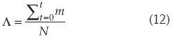 Definiendo la fracción acumulada de movimientos Λ como: