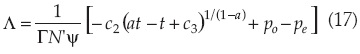 donde c1 y a son constantes, po = protuberancia inicial (en t = 0), e(t) = espesor erosionado, pe = protuberancia de equilibrio (definida como el valor de p para t → ∞).