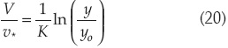 siendo V la componente del vector velocidad, según la dirección principal del flujo a una distancia y del fondo, y K es la constante de von Kármán.