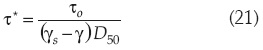 Los valores de I se representan gráficamente frente a la tensión adimensional sobre el lecho τ*: