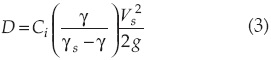 donde ρ es la densidad del agua; Cd, el coeficiente de arrastre; Φ, el ángulo de fricción; γ = ρg, γs, el peso específico del escollo; Vs, la "velocidad contra la piedra" y Ci = (3/2)CdtgΦ−1. Los valores de Ci propuestos por el autor son 1.35 para una piedra aislada y 0.69 para una piedra contenida en un manto. El principal problema de la fórmula de Izbash reside en la ambigüedad del sentido y dificultad de estimación de la velocidad actuante contra la piedra.