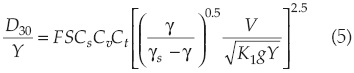 donde D30e es el tamaño D30 utilizado en cada experimento y D30M es el tamaño D30, según Maynord et al. (1987).