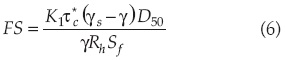 Introduciendo la fórmula de Manning para la pendiente de energía Sƒ y la fórmula de Strickler para la rugosidad, y sustituyendo las constantes τc*=0.047, FS=1.2 y (γs − γ)/γ= 1.65 resulta: