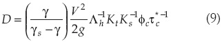 ψ = factor de conversión entre tasa de transporte y partículas puestas en movimiento.
