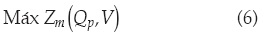 Debe notarse que para un periodo de retorno conjunto dado, la ecuación (2) puede ser satisfecha por una infinidad de pares de valores (Qp,V). Para resolver de forma única este problema, se propone determinar cuál de esos pares de valores produce los efectos más desfavorables sobre la presa por diseñar o revisar. De tal forma que si Zm representa la máxima elevación de la superficie libre del agua que se alcanza dentro del vaso una vez transitado el hidrograma, entonces la avenida de diseño queda definida al resolver el problema de optimización no lineal planteado por: