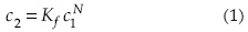 Donde c2 es la concentración de imazapyr adsorbido por el suelo (μg g-1), c1 es la concentración en la solución (en equilibrio) (mg ml-1), Kf es el coeficiente empírico de Freundlich y N es un coeficiente de potencia que indica la dependencia no lineal de la tasa de adsorción sobre la concentración del soluto. Cuando el parámetro N tiene el valor de la unidad, el modelo es lineal y Kf corresponde al coeficiente de distribución (Kd).