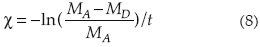 Se asumió una tasa constante de degradación de primer orden (%), válida para pequeñas concentraciones del soluto y cuando la degradación ocurre solamente por actividad de microorganismos (Das y Kluitenberg, 1996); se estimó con la ecuación: