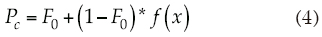Donde Pc es la probabilidad corregida; ƒ(x), la probabilidad empírica que le corresponde a cada día (Xi) del año; F0, la frecuencia donde el inicio de la estación de crecimiento se presenta el primero de enero, y se obtiene con: