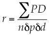 Donde P y D son las desviaciones de los valores mensuales en relación con el valor medio general de precipitación y profundidad del nivel en el acuífero respectivamente; δp y δd son las desviaciones estándar de cada una de las series; n es el número de datos utilizados.