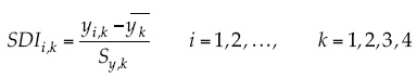 El SPI es el número de veces que un valor concreto del escurrimiento acumulado en un periodo de tiempo se separa de la media de la serie, medido en unidades de desviación típica. En el SDI, cada valor es comparado con todos los registros existentes, preferentemente mensual o, en su caso, anual.