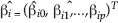 es el vector p + 1 del coeficiente de regresión local en la posición i.