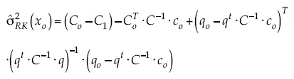 son los coeficientes de la regresión que pueden ser estimados mediante OLS (Ordinary Least Squares) u óptimamente utilizando GLS (Generalized Least Squares) y λo es el vector de n pesos (weights) de kriging utilizados para interpolar los residuos. La varianza de predicción refleja la posición de los nuevos sitios (los extrapolados) en el espacio geográfico (Hengl, 2009):