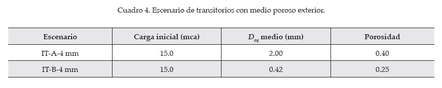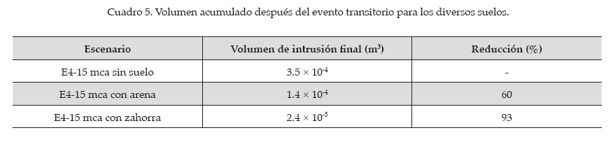 En el cuadro 5 se muestra el volumen acumulado medio de intrusión para los escenarios del medio exterior poroso.