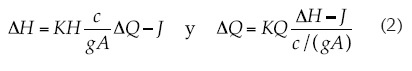 siendo J el término de pérdida de carga; KH, la variación de la carga, y KQ, la variación en el flujo.