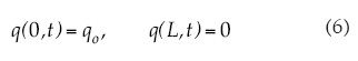 Para establecer las condiciones inicial y de frontera que deben sujetar a las ecuaciones de Saint-Venant para modelar el riego por melgas, se tiene en cuenta una melga cerrada, para evitar la pérdida de masa fuera del dominio de riego. Para la fase de avance se tiene: