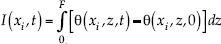 , donde F es la posición del frente de humedecimiento y θ(xi, z, 0) es el contenido volumétrico de agua inicial.