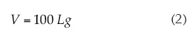 Donde V es la velocidad de la gota (m s-1); 100, el inverso del tiempo de obturación del diafragma (0.01 s), y Lg es la longitud recorrida por la gota en el tiempo de obturación (m).